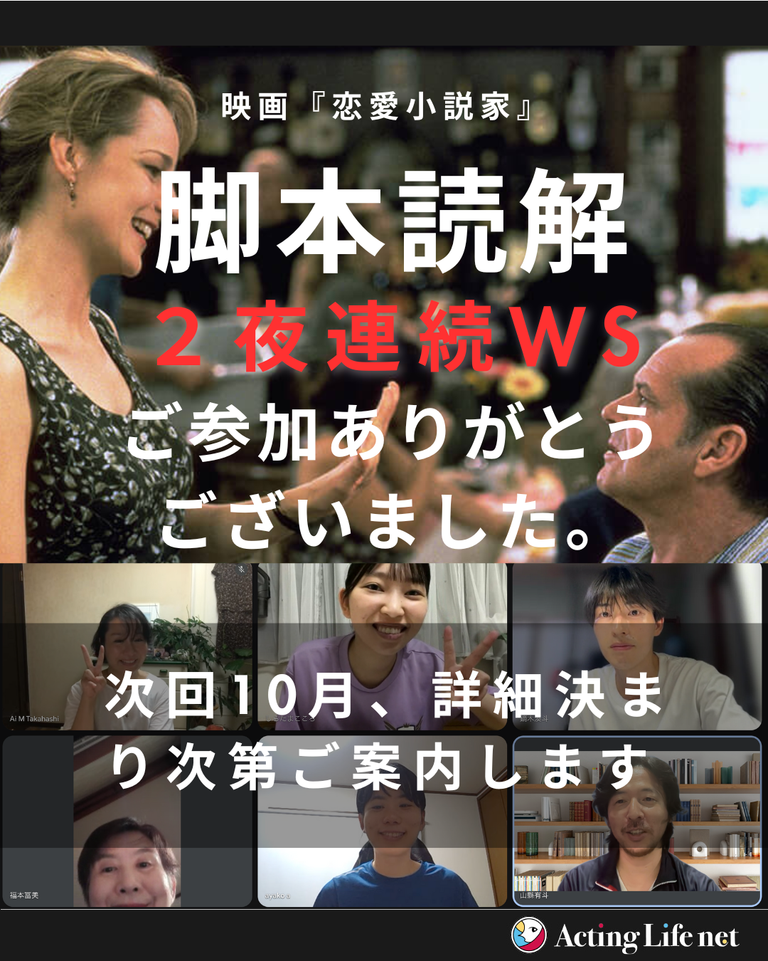いつも「Acting Life net」のブログをご覧いただきありがとうございます。