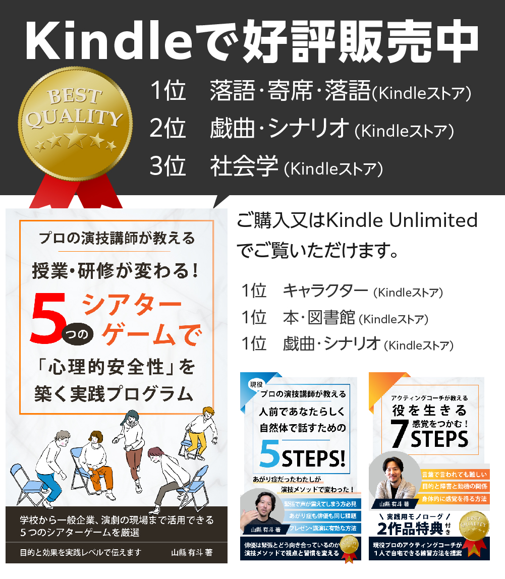 こんにちは、アクティングコーチ・演技トレーナーの山縣です。
