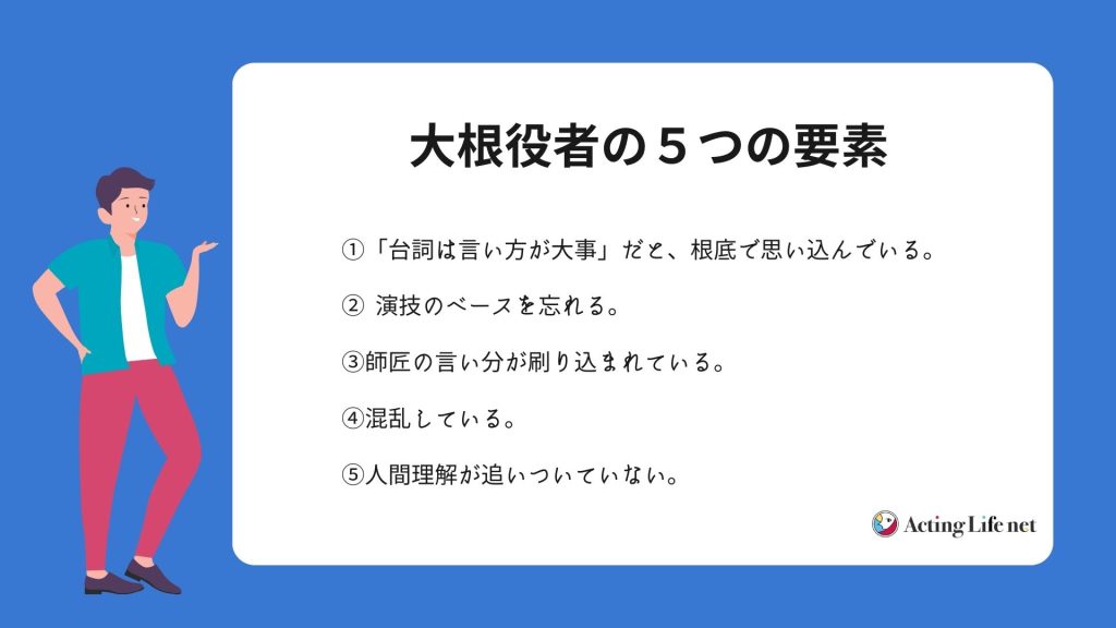 演技が下手と言われる人の5つの要素から、今回は紐解いてみたいと思います。