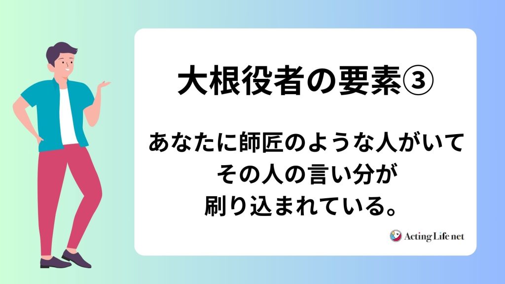 大根のように色々な演技講師のちぐはぐな言葉を受け入れて、虹色の大根となっている場合もあるでしょう。